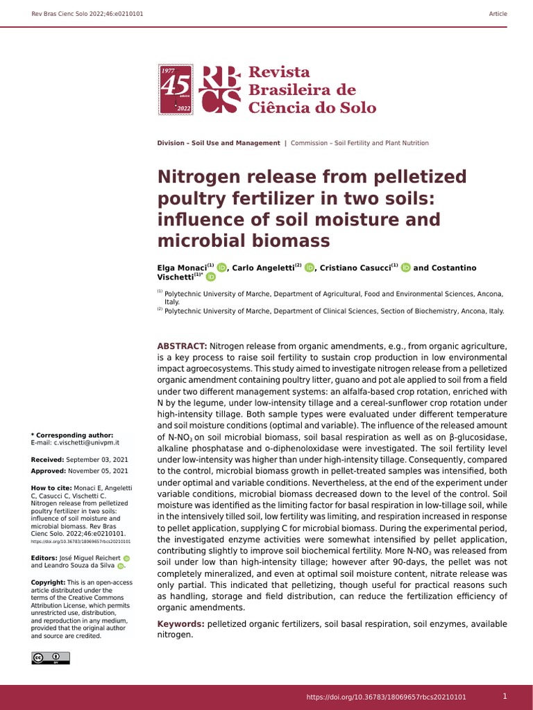 Nitrogen Release From Pelletized Poultry Fertilizer in Two Soils